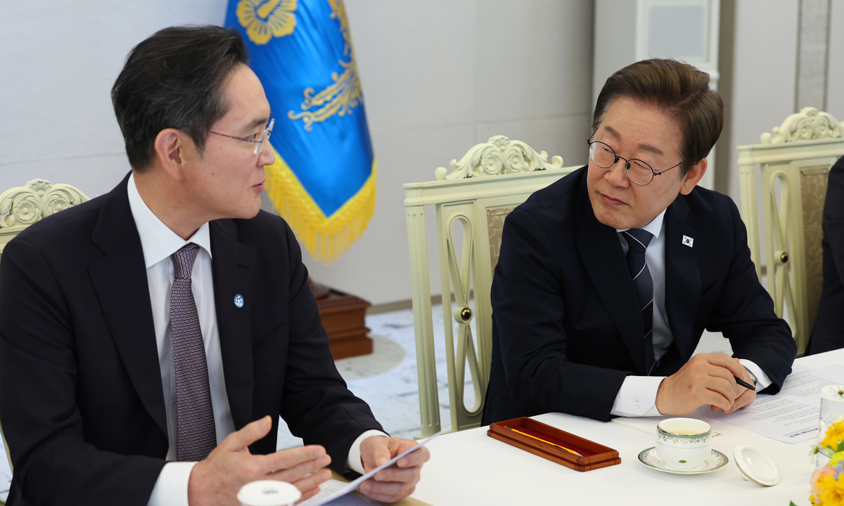 이재용 회장은 “한 가지 부연하면 대통령이 되시고 나서 자서전을 읽어봤다”고 말하기도 했다. 이 대통령은 “아, 그러셨어요?”라며 반색했다.