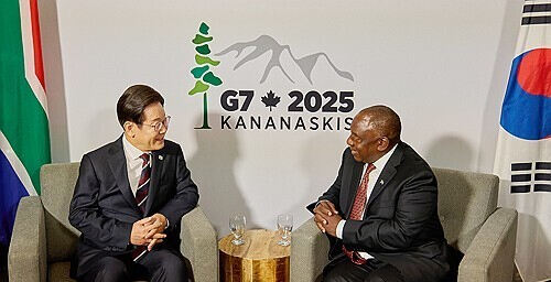 주요 7개국(G7) 정상회의 참석을 위해 캐나다를 방문 중인 이재명 대통령이 16일 오후(현지시간) 시릴 라마포사 남아프리카공화국 대통령과 정상회담을 가졌다.