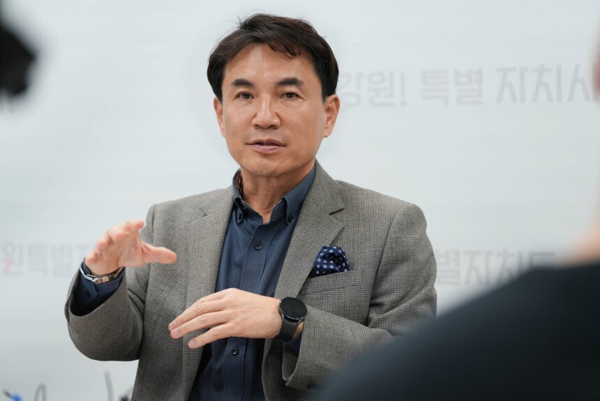 김 지사는 국회의원 시절인 2019년 자신이 개최한 한 공청회에서 5·18 민주화운동을 폄훼했다는 이유로 2022년 4월 14일 공천에서 컷오프 됐다. 대국민 사과를 조건으로 경선 기회를 받았고 경선에서 승리한 끝에 강원지사에 당선됐다.