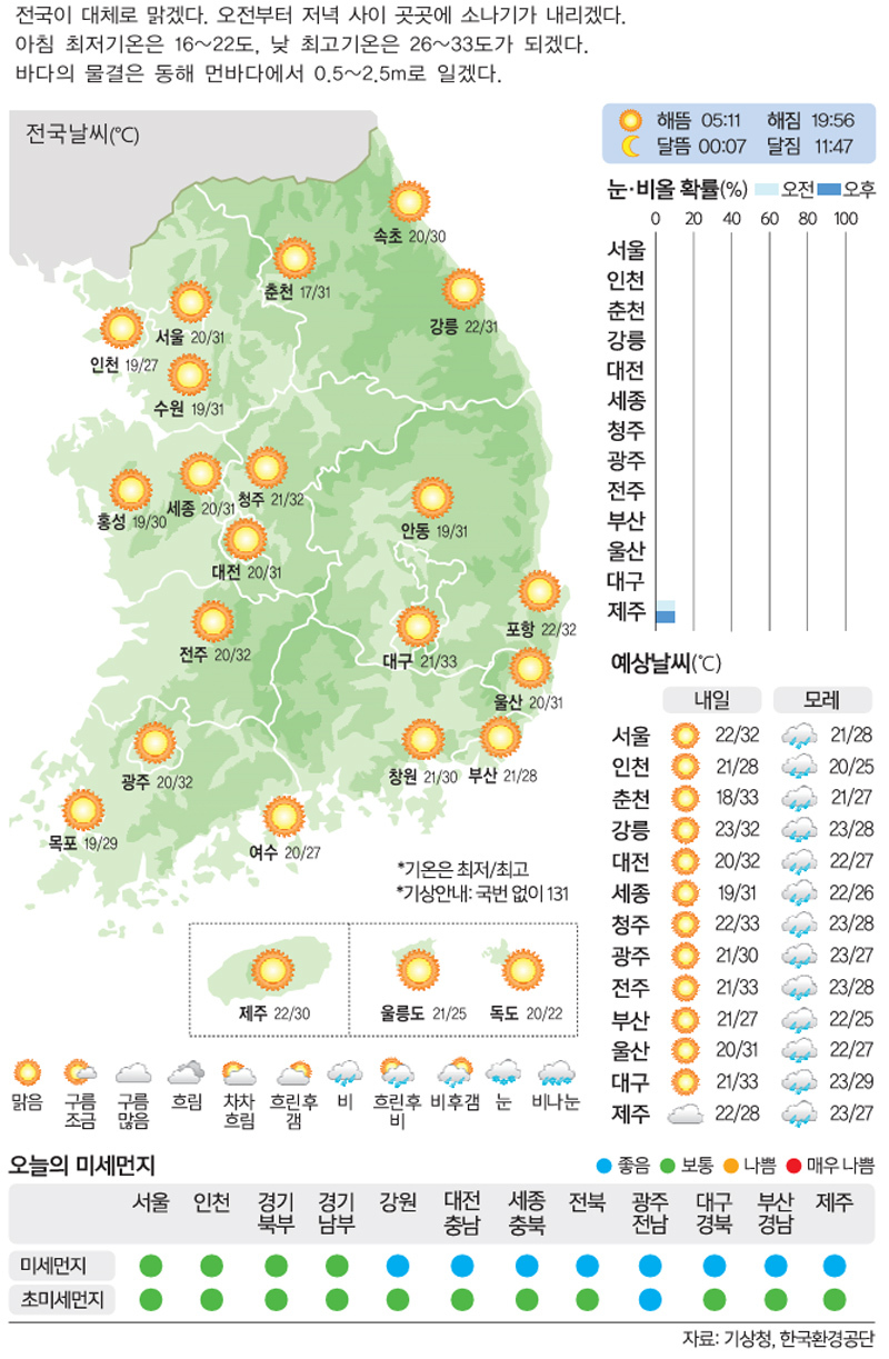 [18일의 날씨] 뙤약볕 '쨍쨍' …곳곳 소나기
