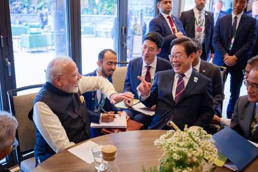 李, 인도 총리와 환담 입력 : 2025-06-18 23:12:00 수정 : 2025-06-18 17:43:16 캐내내스키스=남정탁 기자 구글 네이버 유튜브 주요 7개국(G7) 정상회의 참석차 캐나다를 방문 중인 이재명 대통령이 17일(현지시간) 앨버타주에 마련된 정상회담장에서 나렌드라 모디 인도 총리와 만나 정상회담을 하며 밝게 웃고 있다. 남정탁 기자 Copyright ⓒ 세계일보. 무단 전재 및 재배포 금지 세계일보 남정탁