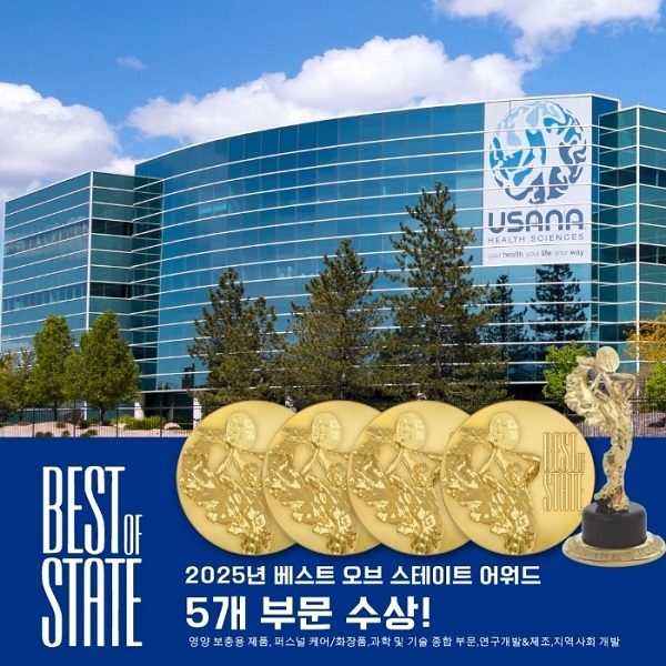 글로벌 세포과학 뉴트리션 전문기업 유사나헬스사이언스(이하 ‘유사나’)가 미국 유타주에서 열린 ‘2025 베스트 오브 스테이트 어워드(Best of State Awards)’에서 총 5개 부문 수상이라는 성과를 거두며, 제품 품질, 과학기술, 사회공헌에 대한 우수성을 입증했다.