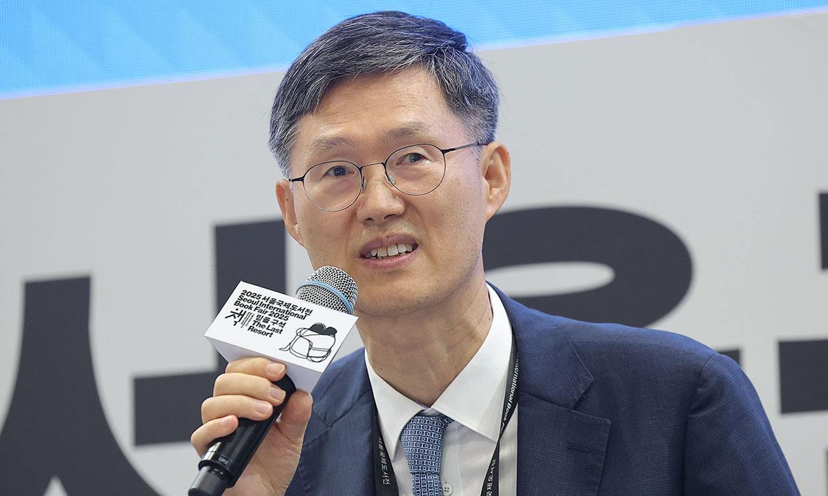 문형배 전 헌법재판소장 권한대행이 22일 서울 강남구 코엑스에서 열린 서울국제도서전 ‘북토크: 어른 김장하의 씨앗’에 참여해 발언하고 있다. 연합뉴스