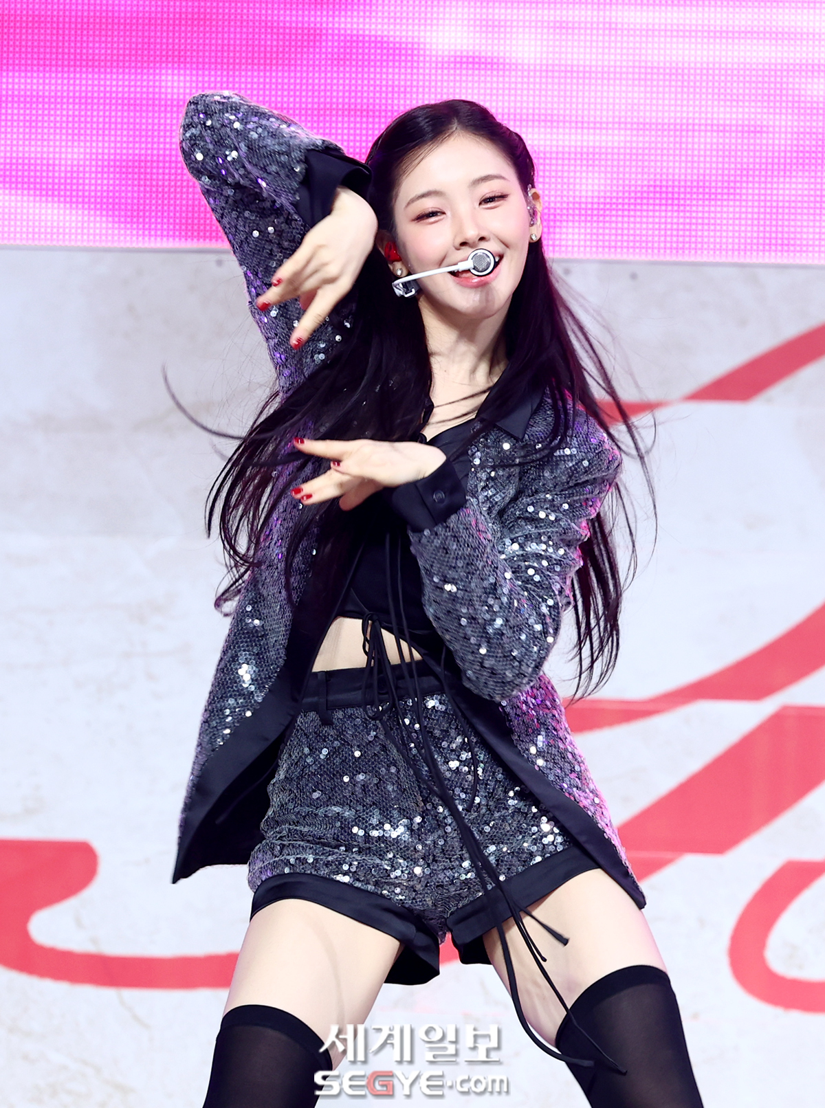 그룹 베이비돈크라이 이현이 23일 오후 서울 용산구 블루스퀘어에서 열린 싱글 ‘F Girl(에프 걸)’의 데뷔 쇼케이스에 참석해 열띤 공연을 펼치고 있다.