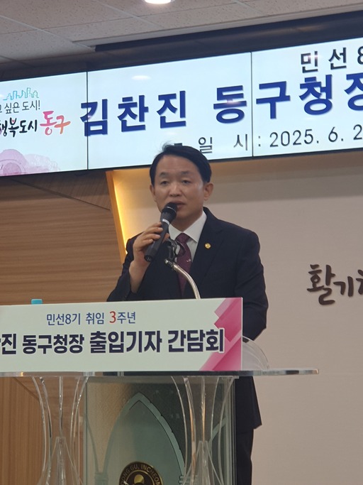 인천 동구는 2026년 7월 전례가 없는 행정적 대변혁이 예고됐다. 동구 전체와 중구 내륙이 합쳐져 새로운 기초자치단체로 출범하기 때문이다. 김찬진(사진) 동구청장은 23일 취임 3주년 기자간담회에서 “신도시 개발로 침체됐던 원도심 지역의 발전과 변화를 기대하는 주민들 호응도가 상당히 높다”고 분위기를 설명했다. 통합 제물포구 인구는 10만명을 넘고, 일대 재개발이 완료되는 2028년이면 13만명에 육박할 것으로 김 구청장은 내다봤다. 김 구청장은 주요 공약 중 도시개발 분야와 관련해 “화수부두 일대가 도시재생 혁신지구로 선정되는 쾌거를 이뤘다”면서 “국비 250억원, 시비 125억원의 재정 보조를 포함한 총사업비 1200억원을 투입해 첨단산업 거점으로 탈바꿈시킬 계획”이라고 소개했다.