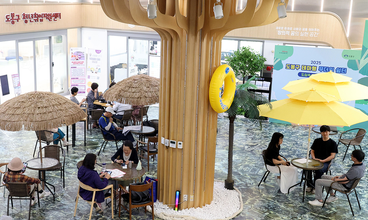 구청 무더위쉼터서 피서 입력 : 2025-06-23 22:48:24 수정 : 2025-06-23 22:48:24 이제원 선임기자 구글 네이버 유튜브 23일 서울 도봉구 방학동 도봉구청을 찾은 구민들이 파라솔과 테이블이 배치된 휴양지 콘셉트의 무더위쉼터에서 휴식을 취하고 있다. 기자 Copyright ⓒ 세계일보. 무단 전재 및 재배포 금지 세계일보