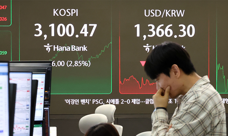 코스피 지수가 장중 3,100선을 웃돈 것은 지난 2021년 9월 28일 이후 약 3년 9개월 만이다.
