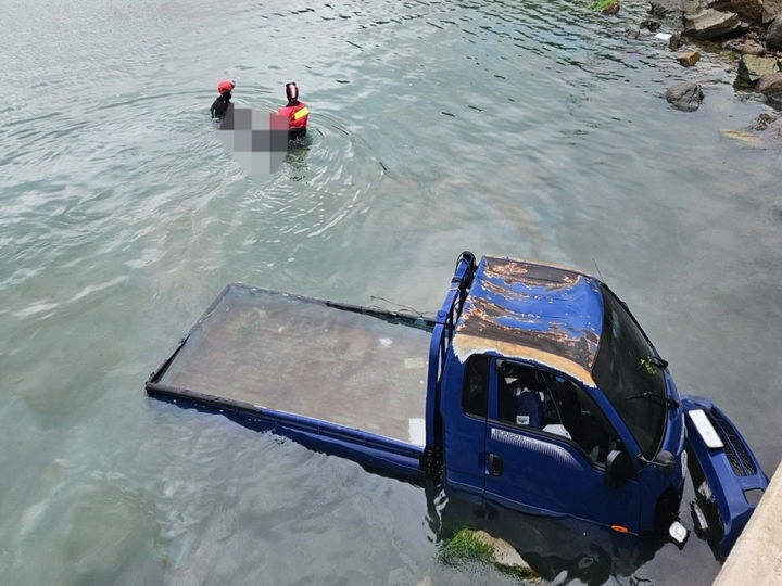 해경은 해상으로 추락한 1.5t 화물 차량 인근 3m해상에서 30대 운전자 남성 A씨를 발견했으나, 운전자는 이미 숨진 상태였다.