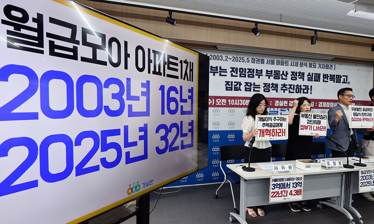 경실련은 통계청의 노동자 평균임금 자료를 활용해 아파트 매입까지 걸리는 기간도 산출했다. 2003년에는 평균임금을 받는 노동자가 서울 아파트 한 채를 매입하려면 16년간 한 푼도 쓰지 않고 꼬박 모아야 했다. 노무현 정부 말기에는 24년이 됐다가 이명박 정부에는 18년으로 줄었으며, 박근혜 정부에는 19년이 됐다. 문재인 정부 동안에는 무려 14년이 늘어 33년을 기록했다. 윤석열 정부에서는 32년으로 조사됐다.