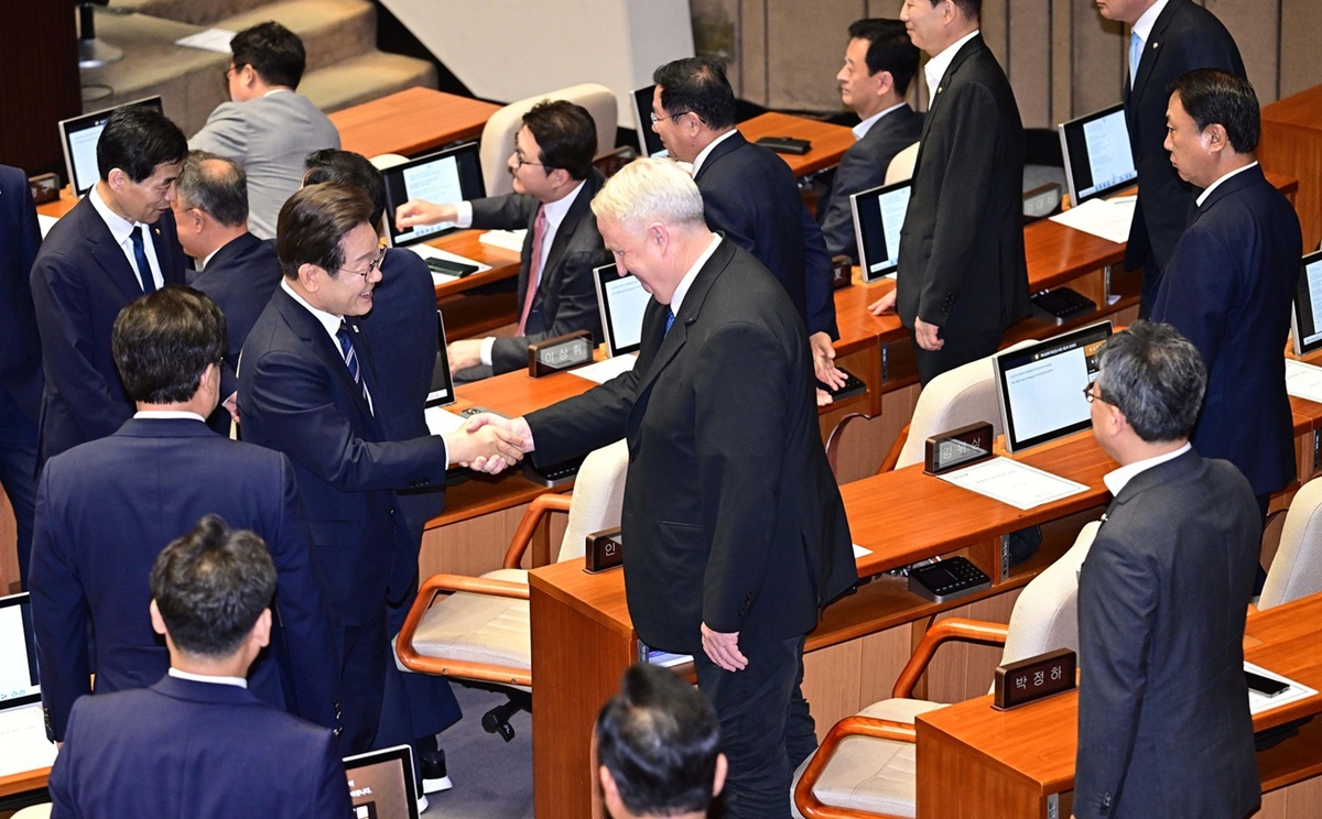 이 대통령은 연설을 마친 후 국민의힘 의원석으로 이동해 한지아 의원을 시작으로 진종오, 박정훈, 임종득, 인요한, 박정하 의원 등과 악수를 시작했다.