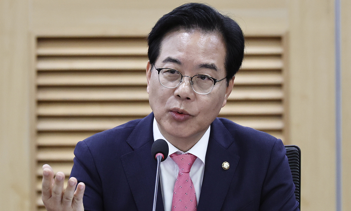 송언석 국민의힘 원내대표가 26일 서울 여의도 국회 의원회관에서 열린 '이재명정권 외교·안보 노선, 어디로 가는가' 긴급토론회에서 발언하고 있다.