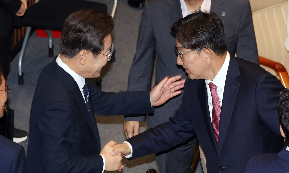 이 대통령은 이날 오전 시정연설을 마치고 본회의장에서 나가는 길에 야당 쪽 의석을 찾아 의원들과 일일이 악수했다.