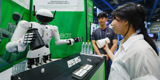26일 서울 강남구 코엑스에서 열린 넥스트라이즈 2025에서 한 참가자가 휴머노이드 로봇과 주사위 게임을 하고 있다. 넥스트라이즈는 한국에서 가장 큰 규모의 단일 벤처·스타트업 행사로 벤처·스타트업 기업가, 액셀러레이터, 벤처 투자사, 산업계 리더, 생태계 관계자들이 네트워크를 형성하고 인사이트를 공유하는 스타트업 박람회다.