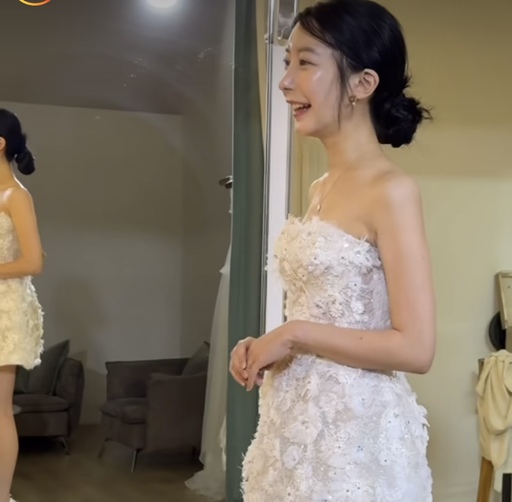 "대규모 돌잔치 계획이라 너무 심플해도 식장 분위기와 안 맞아서 드레스다운 드레스를 입어야 하는 상황"이라고 했다.
