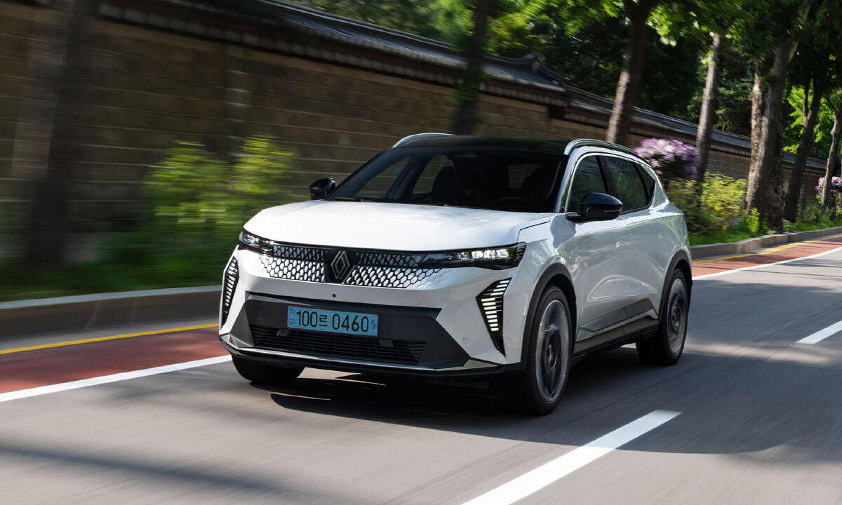 르노코리아의 첫 전기 SUV ‘세닉 E-테크(Tech) 100% 일렉트릭’. 적당한 크기와 긴 주행거리는 장점인 반면, 부족한 스피커 숫자와 외부 소음 차단 능력은 단점으로 느껴졌다. 르노코리아 제공