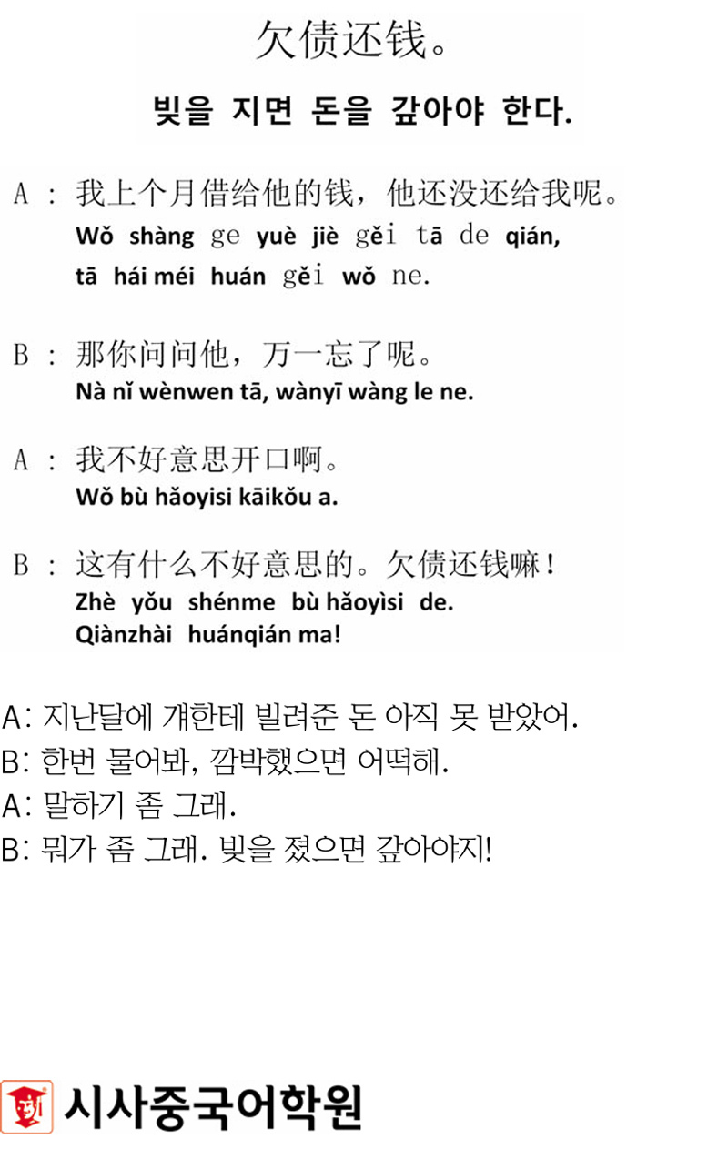 [시사중국어학원의 리얼 중국어 회화] 빚을 지면 돈을 갚아야 한다. 입력 : 2025-06-30 18:22:57 수정 : 2025-06-30 18:22:57 구글 네이버 유튜브 Copyright ⓒ 세계일보. 무단 전재 및 재배포 금지 세계일보