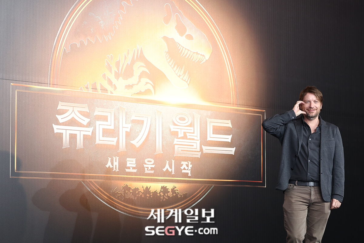 가렛 에드워즈 감독이 1일 포시즌스 호텔 서울에서 진행된 영화 '쥬라기 월드 : 새로운 시작'의 내한 기자회견에 참석해 포즈를 취하고 있다.