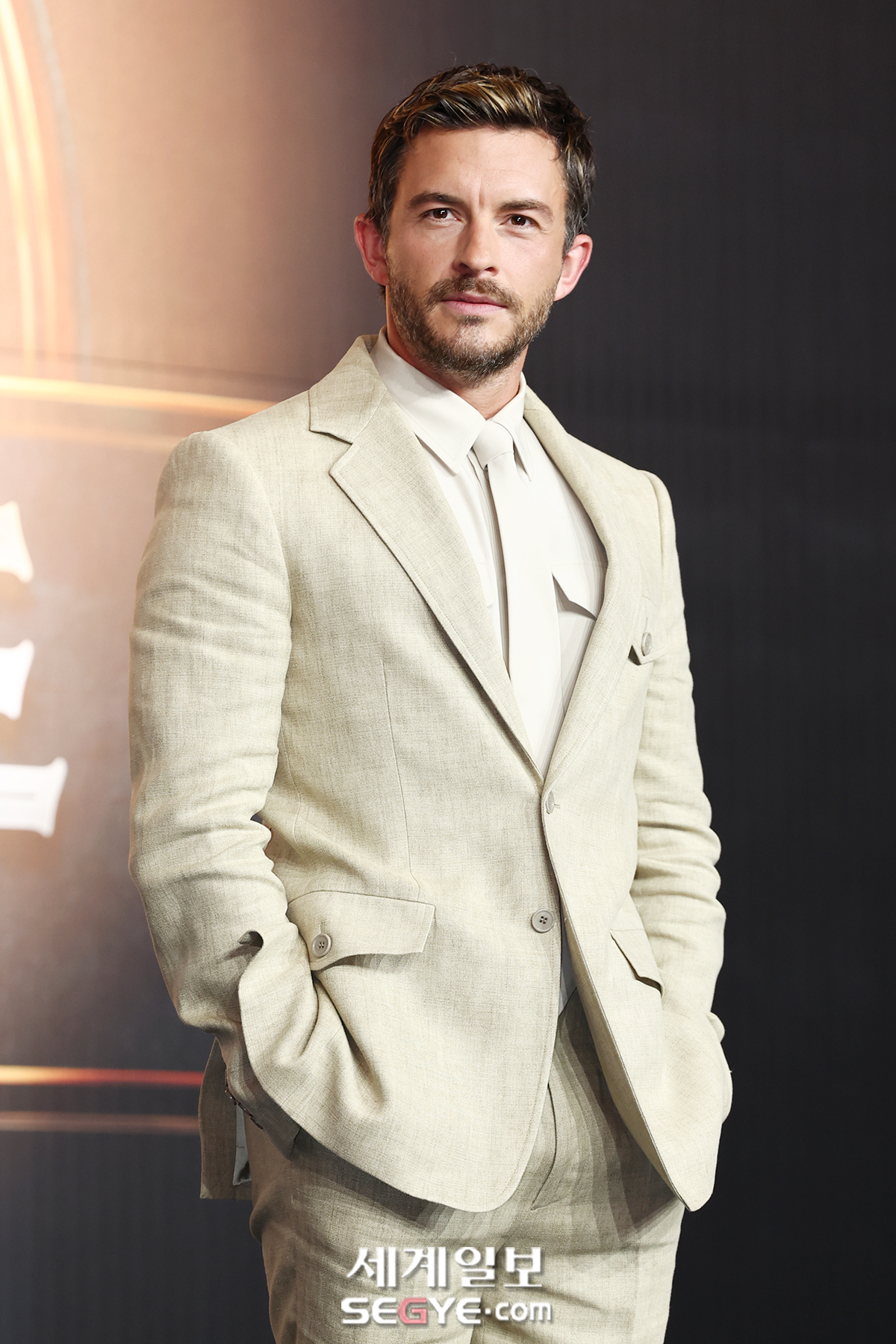 배우 조나단 베일리가 1일 포시즌스 호텔 서울에서 진행된 영화 '쥬라기 월드 : 새로운 시작'의 내한 기자회견에 참석해 포즈를 취하고 있다.