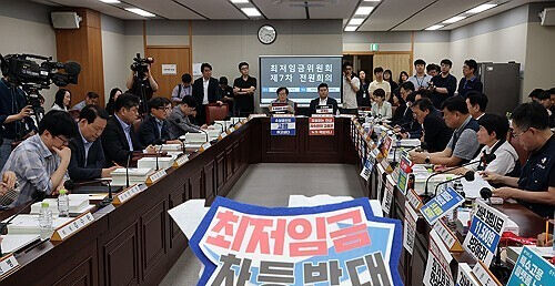 다른 근로자위원인 이미선 민주노총 부위원장은 "문제는 최저임금이 아니라 이를 지키지 않는 사업장과 부실한 근로감독"이라며 "노동부는 법치주의 국가에서 헌법과 최저임금법에 위배되는 임금체불 문제가 없도록 부지런히 근로 감독에 나서 저임금 노동자의 삶을 보호하는 데 모범을 보여야 할 것"이라고 촉구했다.
