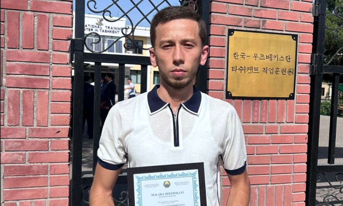 이 가운데 샤흐리사브즈 직업훈련원 졸업생인 딜무라도브 라지즈벡(사진)은 전기·전자 분야에서 1호 자격증을 획득해 상징적인 첫 합격자로 주목받았다.