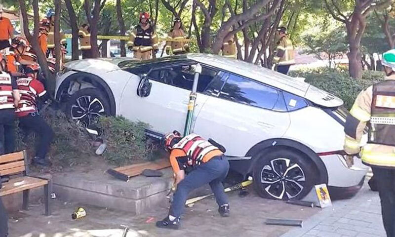 서울 마포경찰서는 이날 오후 4시2분 마포구 상암동 디지털미디어시티역 인근에서 50대 여성이 몰던 전기차 SUV가 인도로 돌진해 공원 벤치에 앉아 있던 40대 중반 남성이 숨졌다고 밝혔다. 피해자는 구조 당시 의식과 호흡이 없는 상태였으며, 심폐소생술을 받으며 병원으로 이송됐지만 끝내 숨졌다.