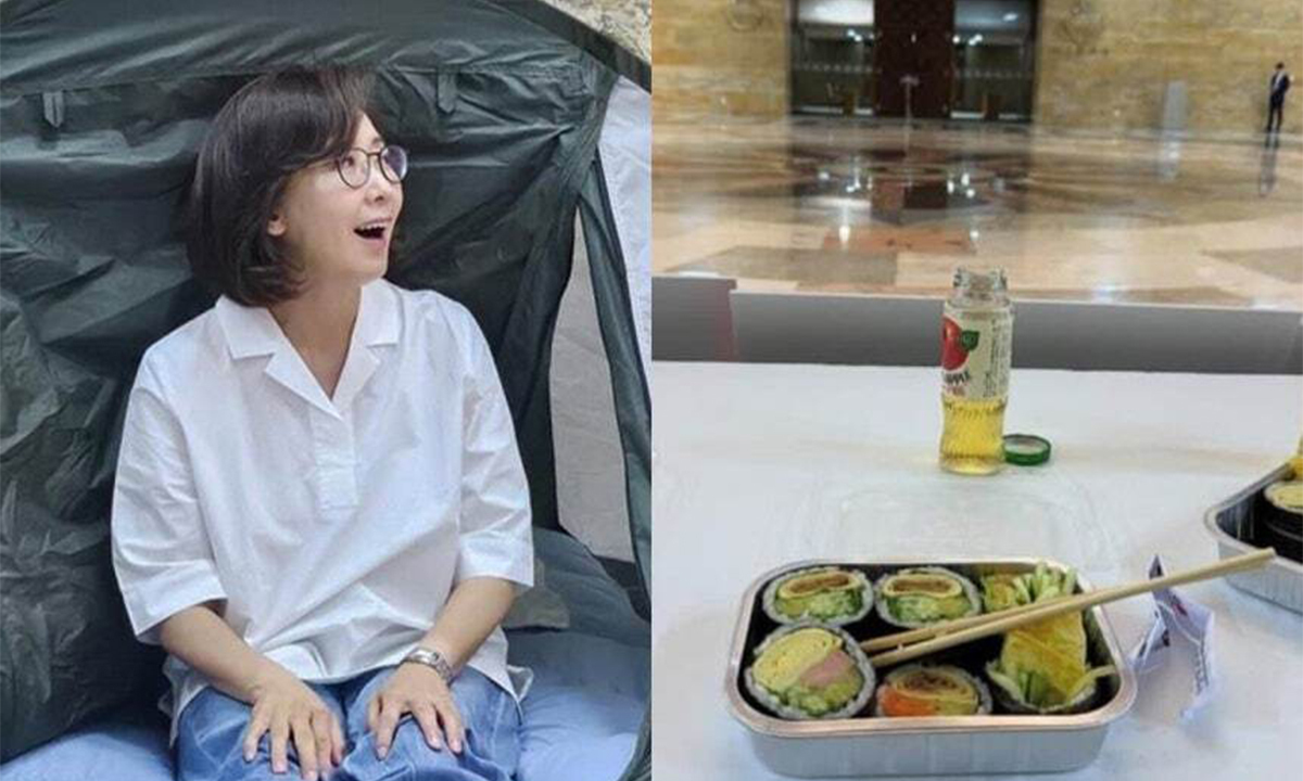 그는 “넓고 쾌적한 국회 본청에서 최고급 같은 텐트 치고, 김밥과 스타벅스 커피 드시면서 화장 여부는 모르겠지만, 평소와 다름없는 얼굴로 화보 찍듯 활짝 웃는다”며 “손 선풍기 앞에 놓고 책 읽는데 국민이 이걸 농성이라고 생각하겠나”라며 ‘보여주기식 정치’라고 비판했다.