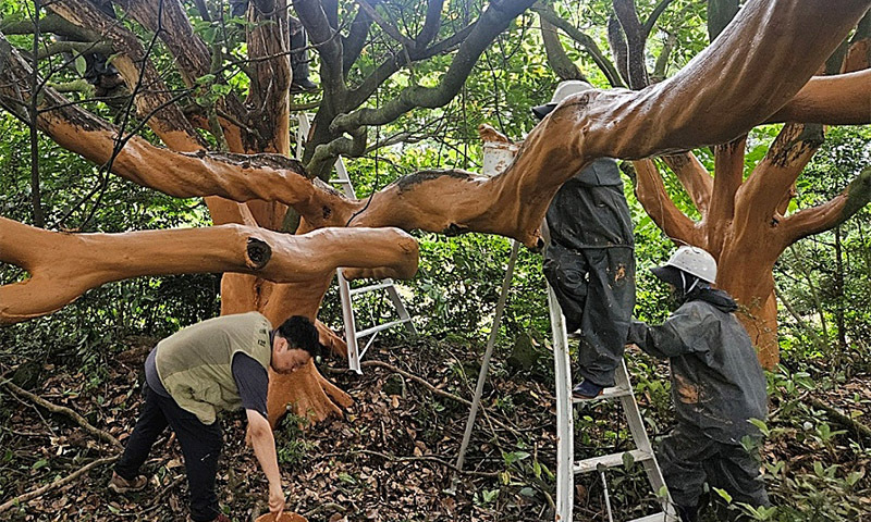 한편, 서귀포시는 지난달 말 훼손된 후박나무에 황토를 바르는 등 방법으로 응급처치를 완료했다