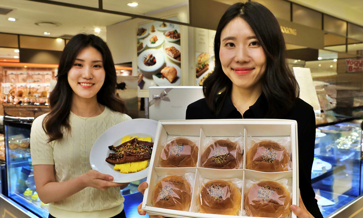 2일 서울 중구 롯데백화점 본점 지하 1층 식품관에서 열린 ‘롯데호텔 프리미엄 보양식’ 팝업 행사에서 모델들이 롯데호텔 베이커리와 ‘장어덮밥’을 선보이고 있다. 롯데백화점은 10일까지 여름철 혹서기에 대비해 롯데호텔 셰프들이 직접 조리한 ‘감태 라자냐‘, ‘수삼 갈비찜’ 등 한식과 중식, 양식, 일식, 베이커리를 포함한 총 17종 프리미엄 보양식을 선보인다. 특히 행사장에서만 만나볼 수 있는 한정 메뉴인 ‘랍스터 샌드위치’도 마련했다.