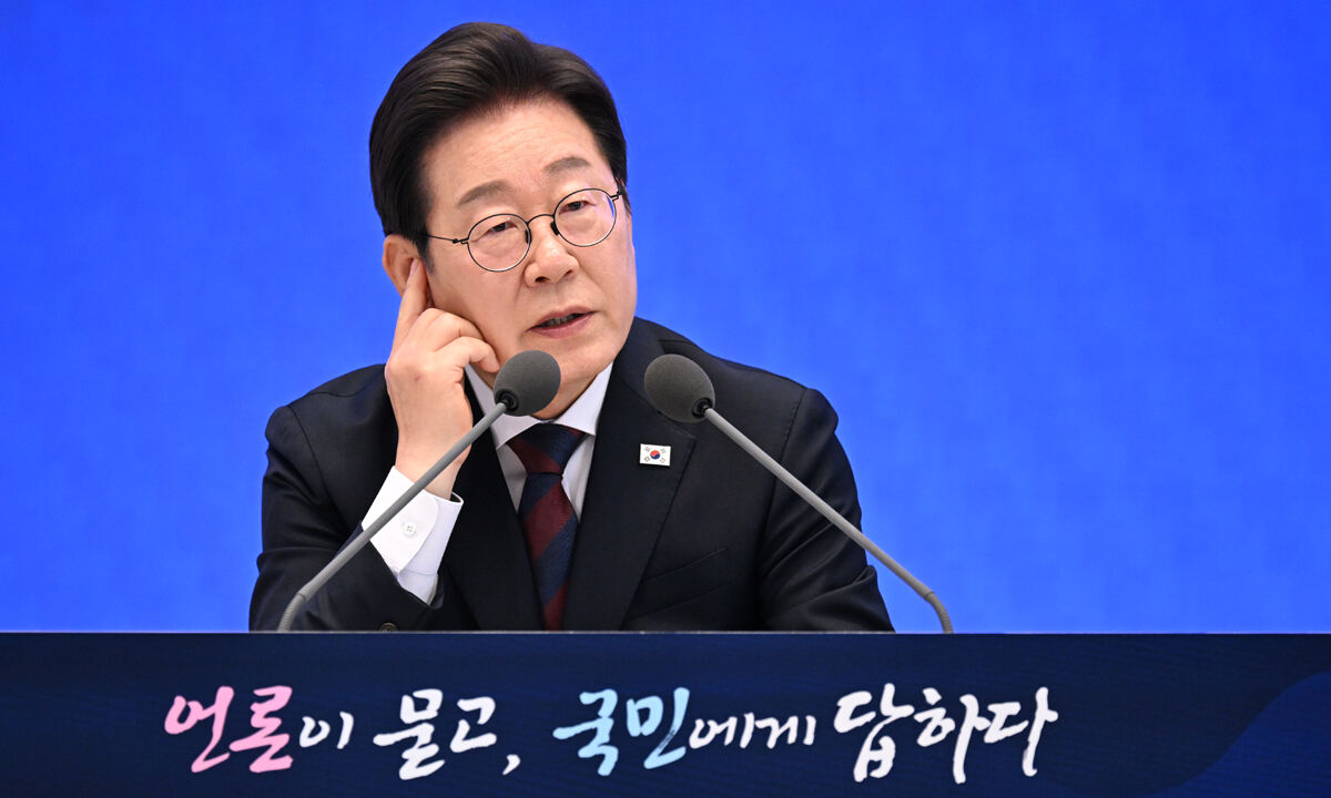 이재명 대통령이 3일 서울 종로구 청와대 영빈관에서 열린 취임 첫 공식 기자회견 '대통령의 30일, 언론이 묻고 국민에게 답하다'에 참석해 기자 질문에 답변하고 있다. 대통령실사진기자단