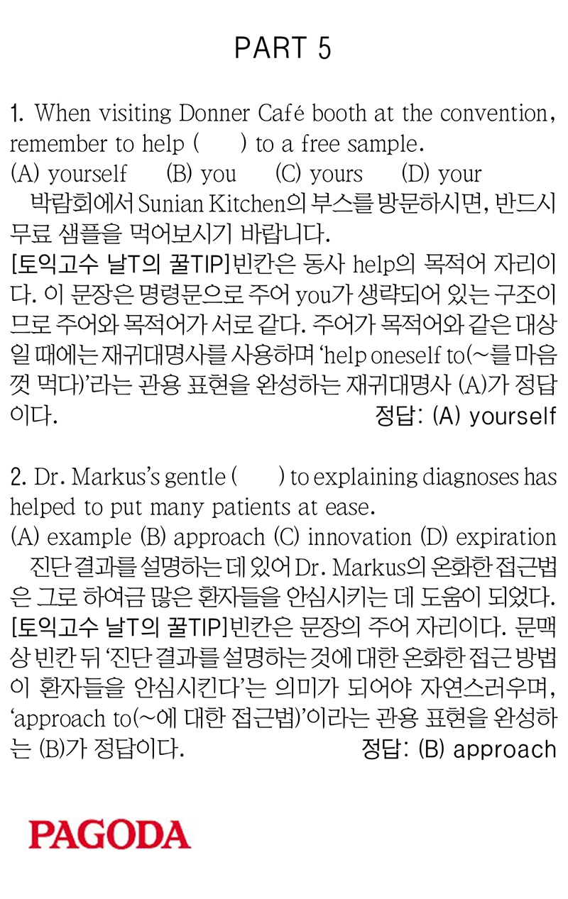 [파고다 강남 끝토익 RC김나래] PART 5 입력 : 2025-07-03 18:15:22 수정 : 2025-07-03 18:15:21 구글 네이버 유튜브 Copyright ⓒ 세계일보. 무단 전재 및 재배포 금지 세계일보