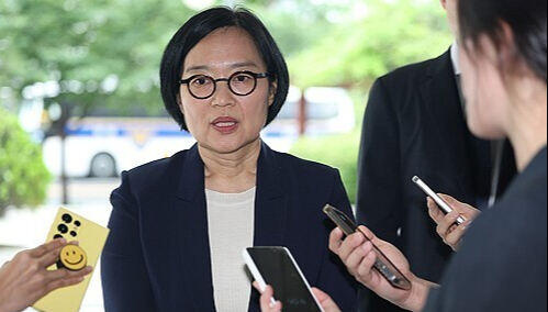 (서울=연합뉴스) 김성민 기자 = 한성숙 중소벤처기업부 장관 후보자가 26일 서울 영등포구 중소기업기술정보진흥원 수도권평가실에 마련된 인사청문회 준비 사무실로 출근하며 취재진 질문에 답하고 있다. 2025.6.26 ksm7976@yna.co.kr