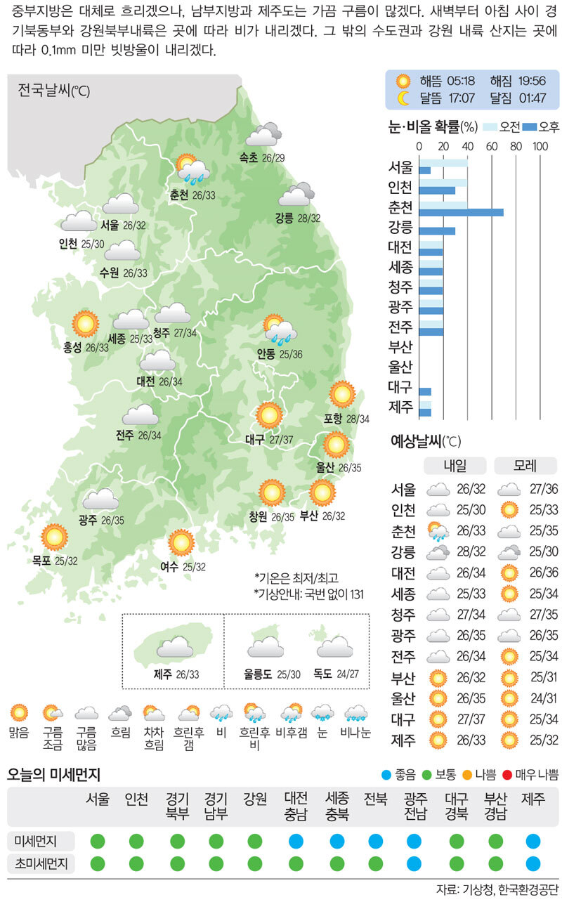[7일의 날씨] 가만히 있어도 땀이 '줄줄' 입력 : 2025-07-06 18:24:40 수정 : 2025-07-06 22:52:06 구글 네이버 유튜브 Copyright ⓒ 세계일보. 무단 전재 및 재배포 금지 세계일보