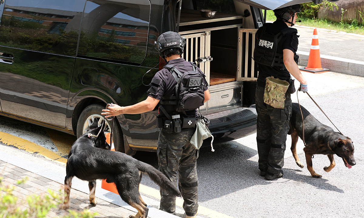 또 폭발물 처리반을 비롯해 경찰과 군 당국 등 수색 인력 300여명과 폭발물 탐지견 4마리를 투입, 교내 건물 전체에 대해 수색을 벌였지만 폭발물은 발견하지 못했다.