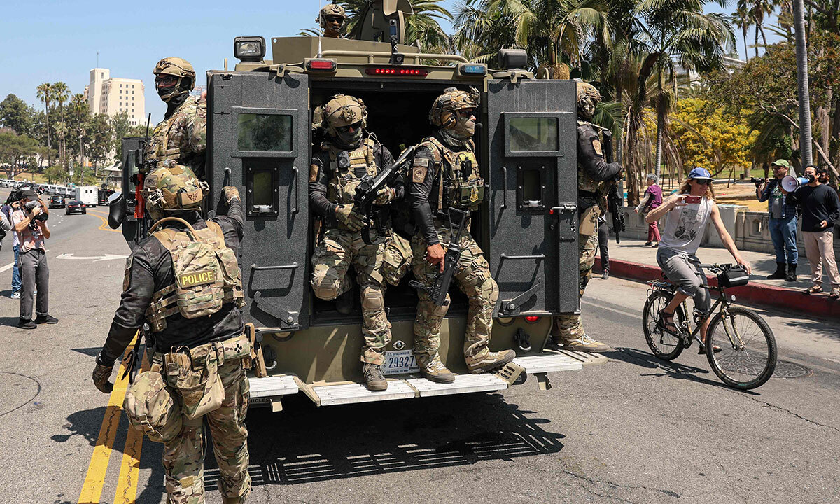 무장하고 불법이민자 단속 입력 : 2025-07-08 19:12:32 수정 : 2025-07-08 19:12:31 구글 네이버 유튜브 7일(현지시간) 미국 캘리포니아주 로스앤젤레스(LA) 맥아더 공원에서 관세국경보호국(CBP) 무장요원들이 불법이민자 단속을 위해 장갑차에서 내리고 있다. <연합>연합> Copyright ⓒ 세계일보. 무단 전재 및 재배포 금지 연합