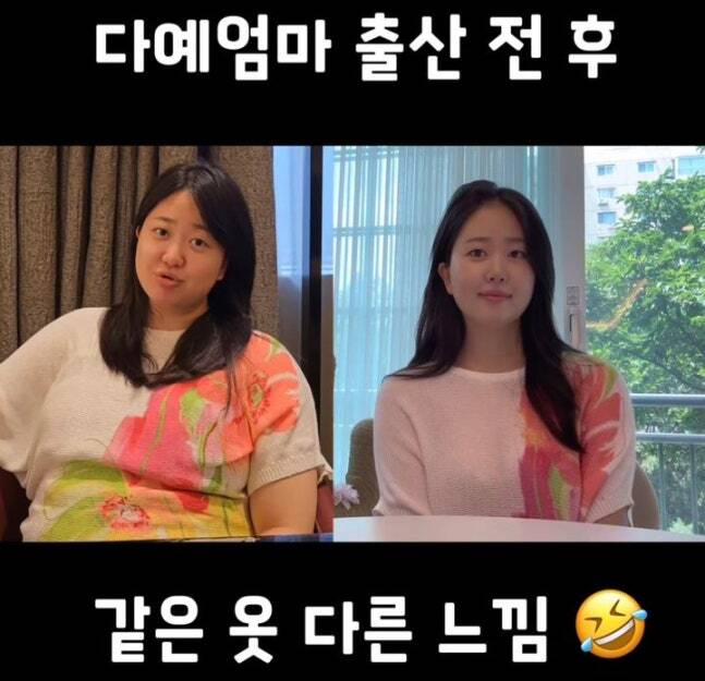 영상 속 김다예는 출산 후 다이어트에 성공한 모습이다. 이에 박수홍은 "다예 엄마 출산 전후. 같은 옷 다른 느낌"이라며 아내의 다이어트 성과를 강조했다.