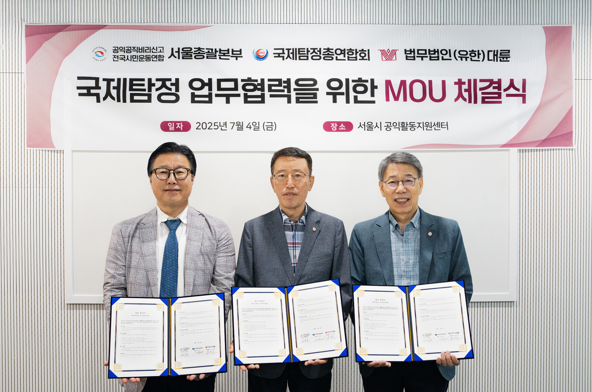 법무법인 대륜이 사단법인 공익공직비리신고전국시민운동연합(공신연)과 국제탐정총연합회와 MOU를 체결하며 공익 신고 및 조사 법률지원 체계 구축을 강화한다고 9일 밝혔다.