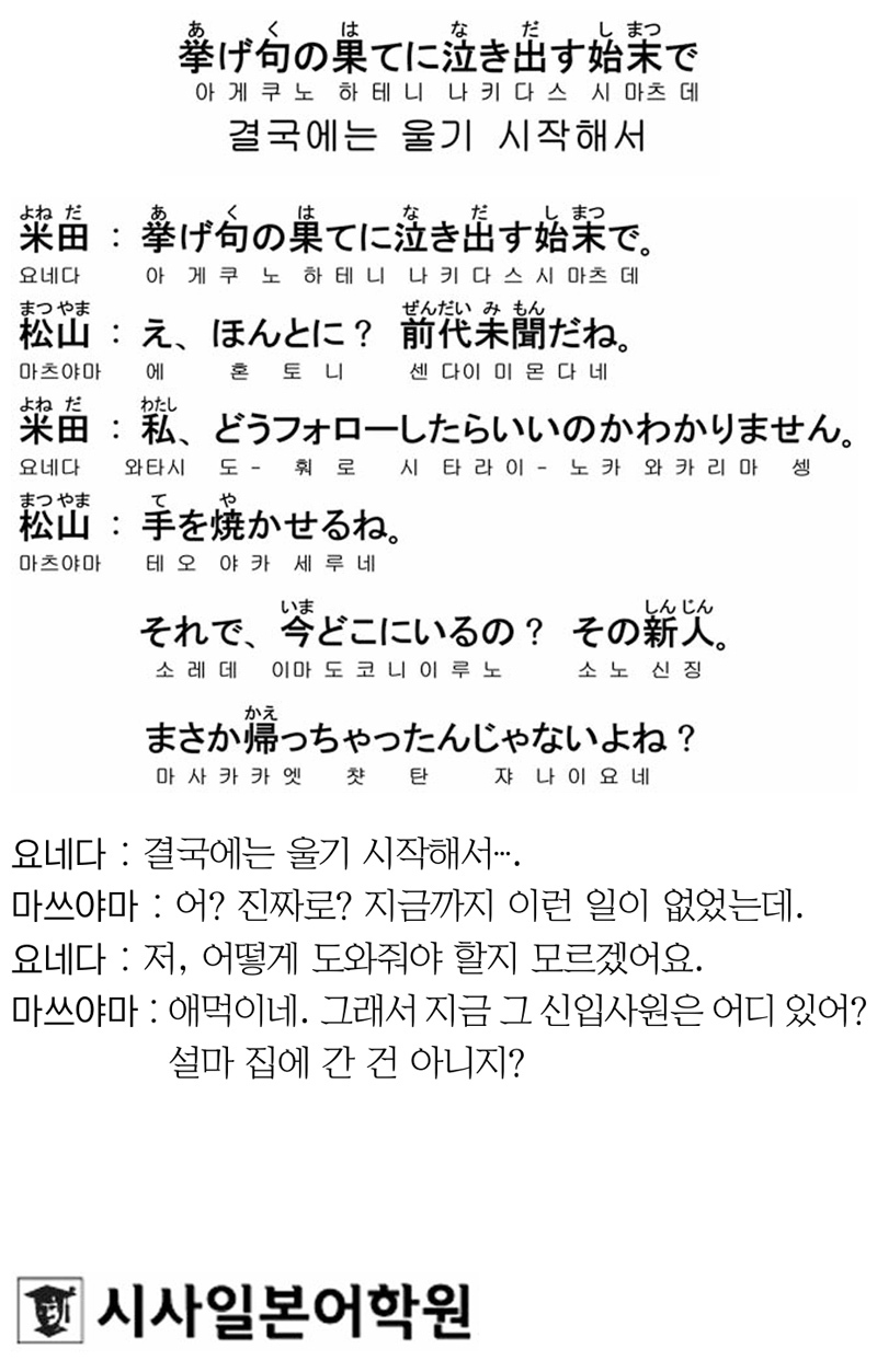 [시사일본어학원의 초단기 일본어 회화] 결국에는 울기 시작해서 입력 : 2025-07-09 18:20:59 수정 : 2025-07-09 18:20:57 구글 네이버 유튜브 Copyright ⓒ 세계일보. 무단 전재 및 재배포 금지 세계일보