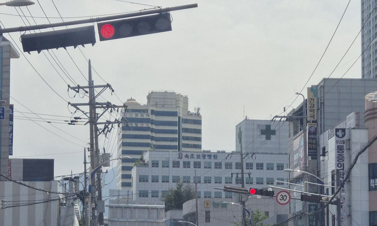 강원 속초 시내 곳곳에서 기울어진 신호등이 잇따라 목격되며 시민들의 궁금증을 자아내고 있다.