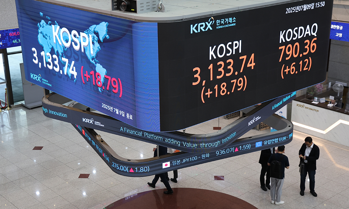 9일 서울 여의도 한국거래소 현황판에 코스피, 코스닥 지수가 표시돼 있다. 연합뉴스