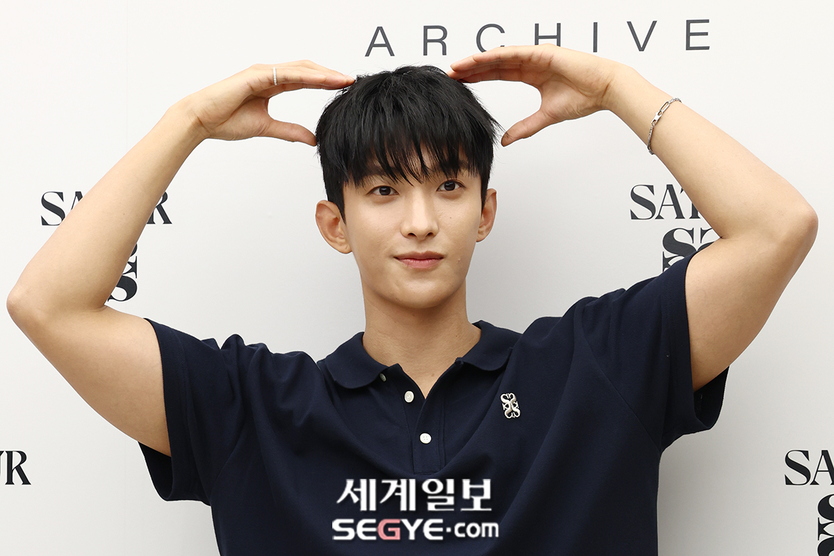 그룹 세븐틴 도겸이 10일 서울 중구 명동의 한 매장에서 진행된 팝업스토어 오픈 기념 행사에 참석해 포즈를 취하고 있다.