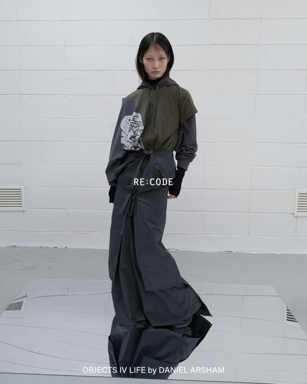 오브젝트 포 라이프는 현대미술 작가 다니엘 아샴이 론칭한 브랜드로, 현대 문명과 고고학을 결합한 조형적인 디자인이 특징이다. 재고 원단과 재활용 소재, 천연 섬유 등을 활용하여 워크웨어 스타일의 의류를 제작해왔으며, 자원 순환 방식을 통해 지속가능한 가치를 추구하는 래코드와 결을 같이한다. 남은 자원을 활용해 새 가치를 만들어낸다는 점에서 협업이 진행됐다.