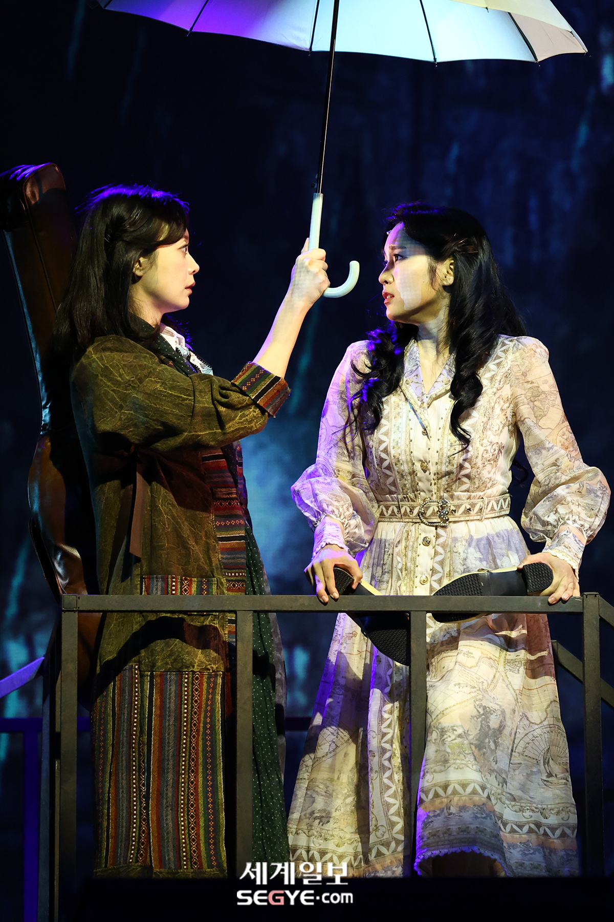 배우 전소민(사진 왼쪽)과 이예원이 10일 서울 강서구 LG아트센터 서울에서 열린 연극 ’사의 찬미’ 프레스콜에 참석해 열연하고 있다.