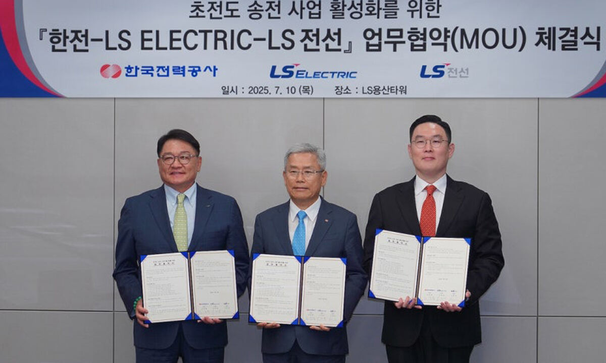 한전은 10일 서울 LS 용산타워에서 LS일렉트릭, LS전선과 ‘데이터센터 초전도 전력망 구축을 위한 기술협력 업무협약’을 체결했다. 협약식에는 김동철 한전 사장, 구자균 LS 일렉트릭 회장, 구본규 LS전선 대표이사 등이 참석했다. 이번 협약으로 한전은 초전도 기반의 전력공급 기술 개발과 제도 정비를 주도한다. LS일렉트릭은 초전도 전류 제한기와 전력 기자재 공급, LS전선은 초전도 케이블 설계와 생산을 맡는다. 한전은 “3사의 협력을 통해 도심 변전소 설치 공간 절약이 가능해지고 전력시스템 구축 기간 단축을 통해 대규모 전력수요에 효과적으로 대응할 수 있을 것으로 기대된다”고 밝혔다. 초전도 케이블은 기존 구리선 대신 극저온에서 전기 저항이 ‘0’이 되는 초전도체를 활용한 송전선이다. 구리선보다 송전 효율이 높고 낮은 전압에서도 대용량 전류를 송전할 수 있어 미래 전력 인프라의 핵심 기술로 평가받는다. 인공지능 데이터센터(AI DC) 등 늘어나는 전력 수요에 대응할 꿈의 기술로도 여겨진다. 한전 등 3사는 지난 20년간 긴밀하게 협력한 결과 2019년 신갈∼흥덕 변전소 구간을 23kV(킬로볼트)급 초전도 케이블로 연계해 세계 최초로 상용화했다. 또 내년 완공을 목표로 초전도 스테이션을 추진 중이다. 초전도 스테이션이 완성되면 23kV 초전도 케이블을 활용해 추가 변전소 건설 없이 기존 154kV만큼 전력을 공급할 수 있다.