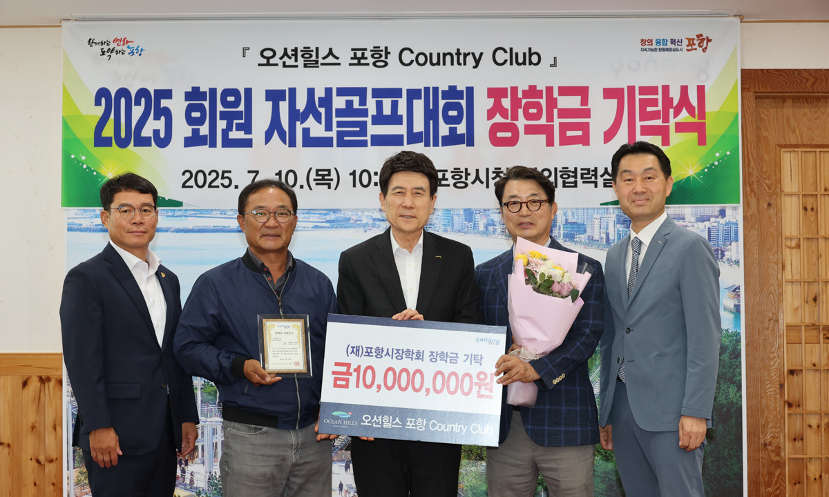 오션힐스 포항컨트리클럽(대표이사 이승도)과 회원운영위원회(위원장 이태용)는 10일 포항시청을 찾아 지역 인재 육성을 위해 (재)포항시장학회에 장학금 1000만원을 기탁했다고 밝혔다.