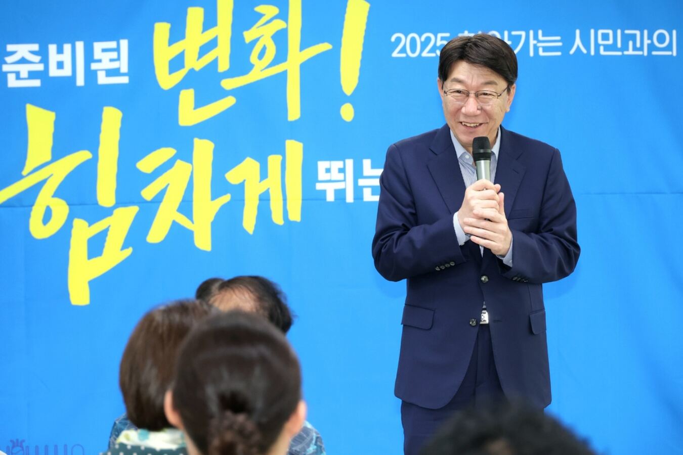 연초부터 진행한 시민과의 대화는 지난달 대통령 선거로 중단한 뒤 이달 4일 효자5동을 시작으로 재개했으나, 최근 온열질환자 발생이 늘자 또다시 일시 중단했다. 일정은 다음 달 19일부터 재개해 11월까지 매주 2~4개 동을 순회할 예정이다.