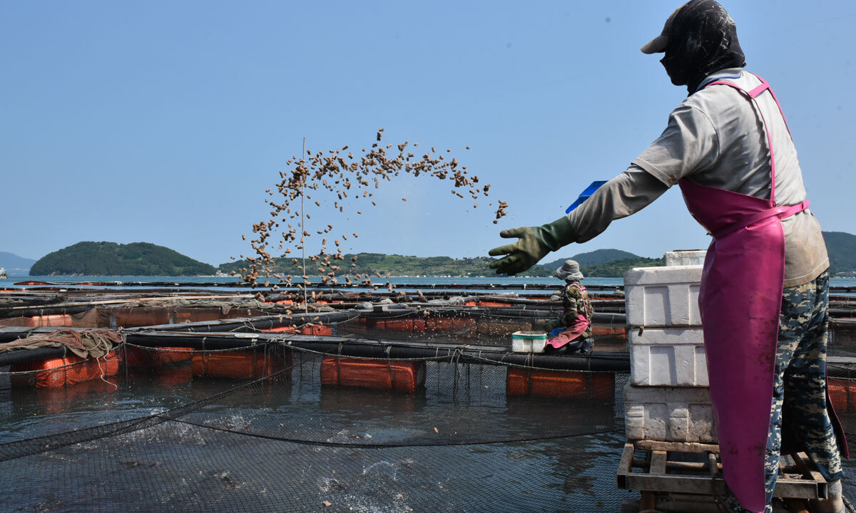 13일 해양수산부 등에 따르면 올해는 짧은 장마 뒤에 여름철 폭염이 곧바로 찾아와 지난해보다 보름 이른 이달 9일 고수온 위기경보 ‘경계’ 단계가 발령됐다. 서·남해 내만과 일부 연안, 제주연안 수온이 28도 안팎에 도달해 고수온 주의보가 발표된 데 따른 것이다. 바닷물 고수온은 특히 해상 가두리 양식 어민들에게는 재앙과도 같다. 고수온 특보는 예비특보(25도 예상 해역), 주의보(28도 도달 예측), 경보(28도 이상 3일 이상)로 나뉘는데, 통상 양식 어류는 경보 환경에 3일 이상 노출되면 폐사한다.
