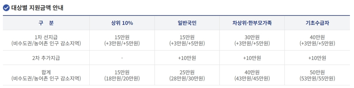 이재명정부의 ‘민생 회복 소비 쿠폰’ 지원 대상별 금액. 행정안전부 제공
