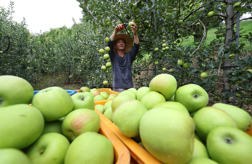 여름 초록사과 ‘썸머킹’ 수확 입력 : 2025-07-15 19:42:07 수정 : 2025-07-15 19:42:07 함양군 제공 구글 네이버 유튜브 15일 경남 함양군 병곡면 소현마을 사과농장에서 농부가 여름철 초록사과인 ‘썸머킹’을 수확하고 있다. 썸머킹은 일본 품종인 ‘아오리(쓰가루)’를 대체하고자 농촌진흥청이 개발한 품종으로, 해외 종자 사용에 따른 로열티 부담이 없다. 아오리보다 수확일이 열흘가량 이르다. 기자 Copyright ⓒ 세계일보. 무단 전재 및 재배포 금지 세계일보