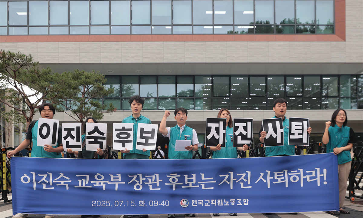 전교조는 “이 후보자는 유·초·중등 교육에 대한 전문성, 경험이 부족하고 충남대 총장 재직 시절 학내 구성원들과의 소통 부재로 비판받아 리더십에도 의문이 제기된다”며 “스스로 물러나는 것이 최소한의 책임 있는 행동”이라고 밝혔다. 이들은 정부를 향해 “교육 대개혁을 기대했으나 이 후보자를 교육부 장관으로 지명한 것은 이러한 기대를 정면으로 배반한 것”이라며 “이재명 대통령은 지금이라도 이 후보자의 지명을 철회하고 개혁 의지와 식견, 민주적 리더십을 갖춘 인물을 다시 지명하길 바란다”고 촉구했다.
