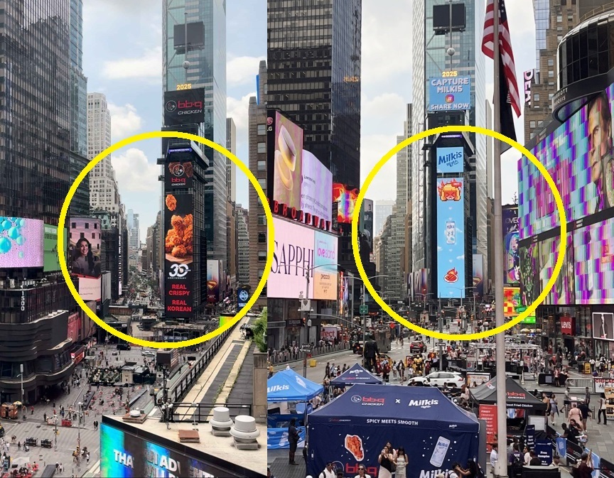 제너시스BBQ 그룹은 미국 뉴욕 타임스스퀘어에서 롯데칠성음료 ‘밀키스(Milkis)’와 함께 K-푸드의 매력을 알리는 특별한 팝업 이벤트를 열었다고 16일 밝혔다.